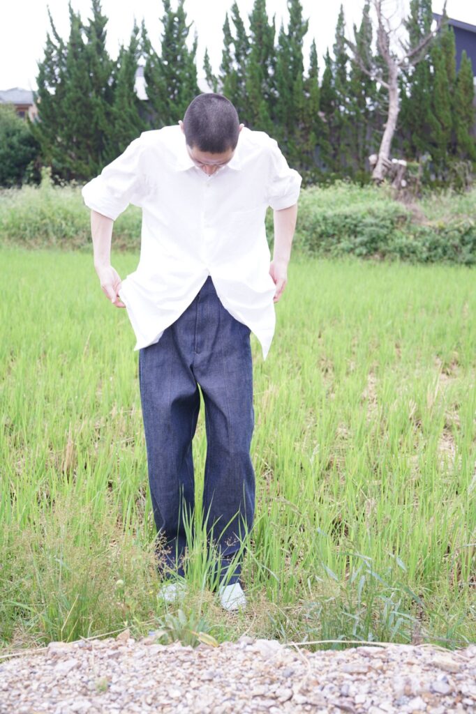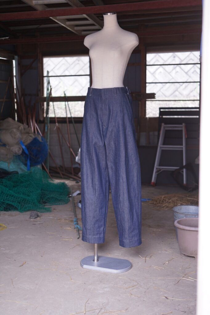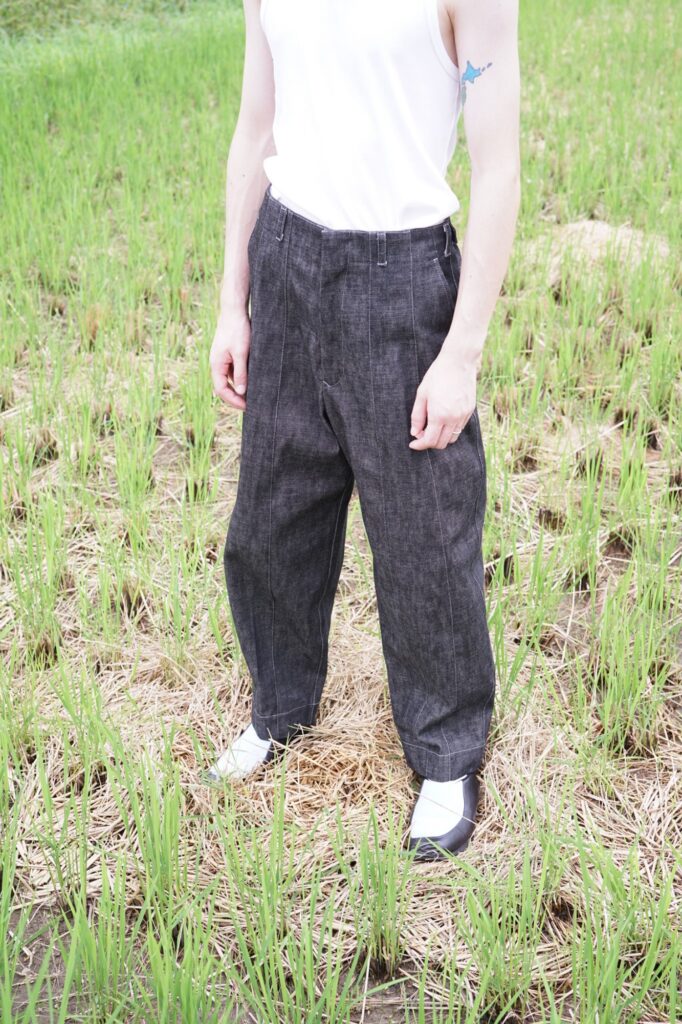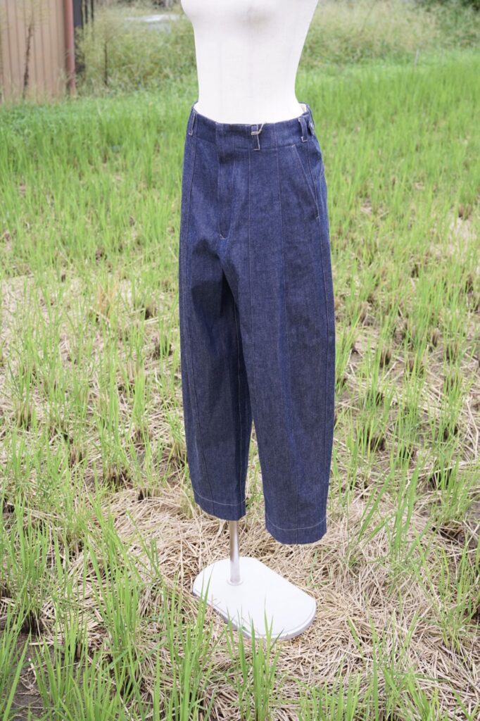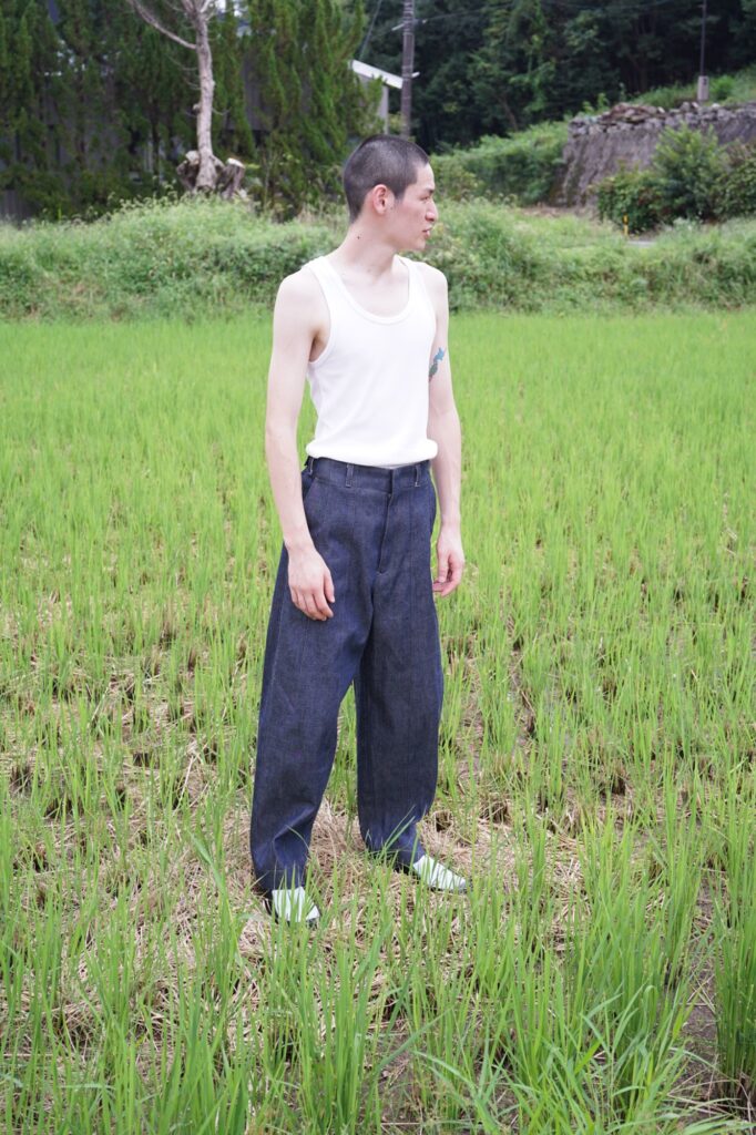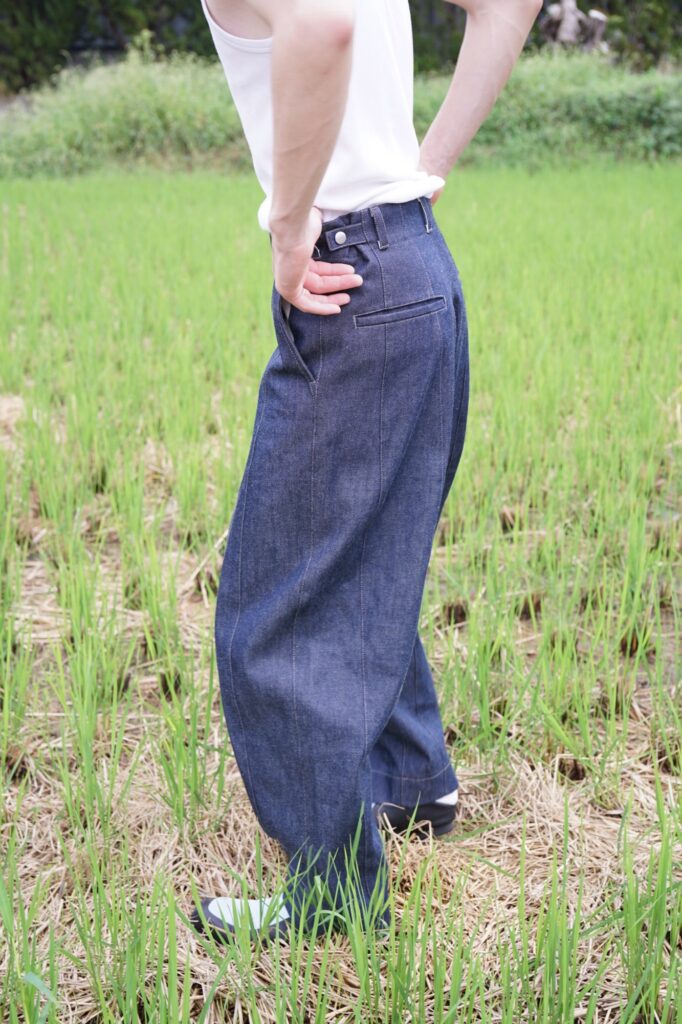 稲を刈る際の束ねるビジュアルをデニムに転用したmirror-may ならではのデニム。