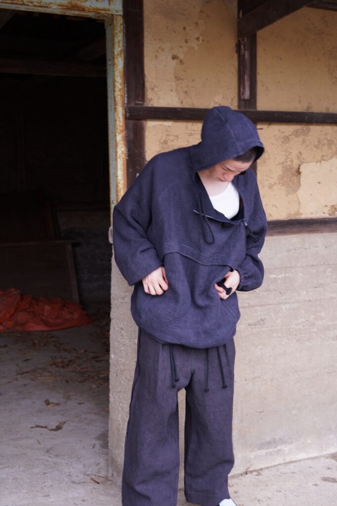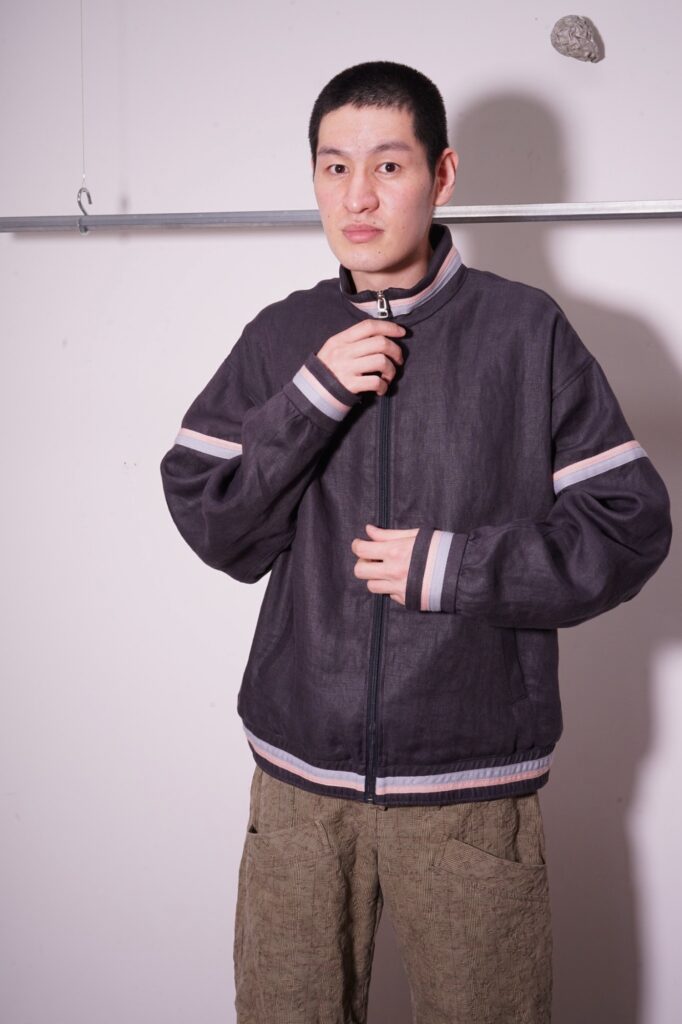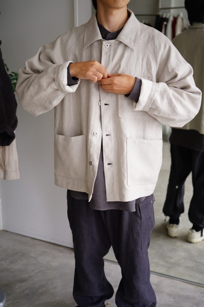 リネンでジャージのセットアップです。