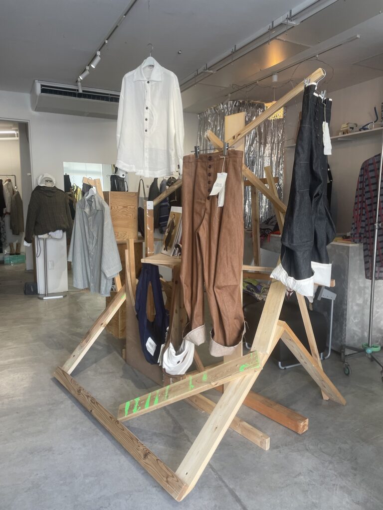 スタジオ内で自らの手で縫製したり、チームや仲間に制作を依頼し自分たちの手だけで製品化してます