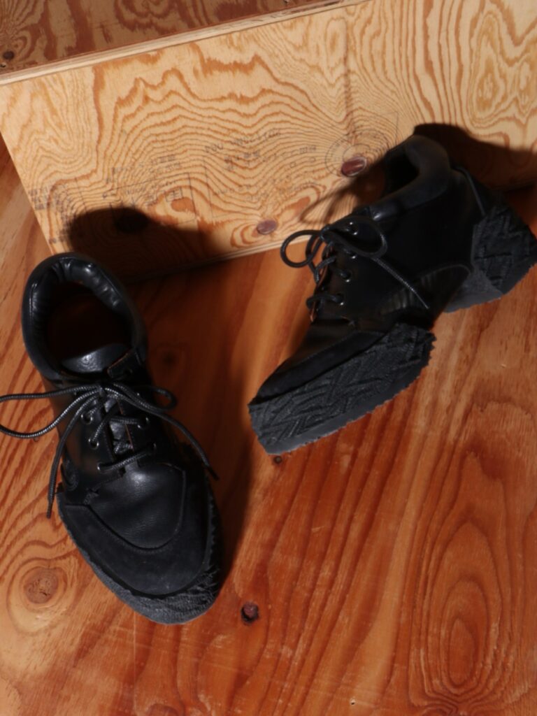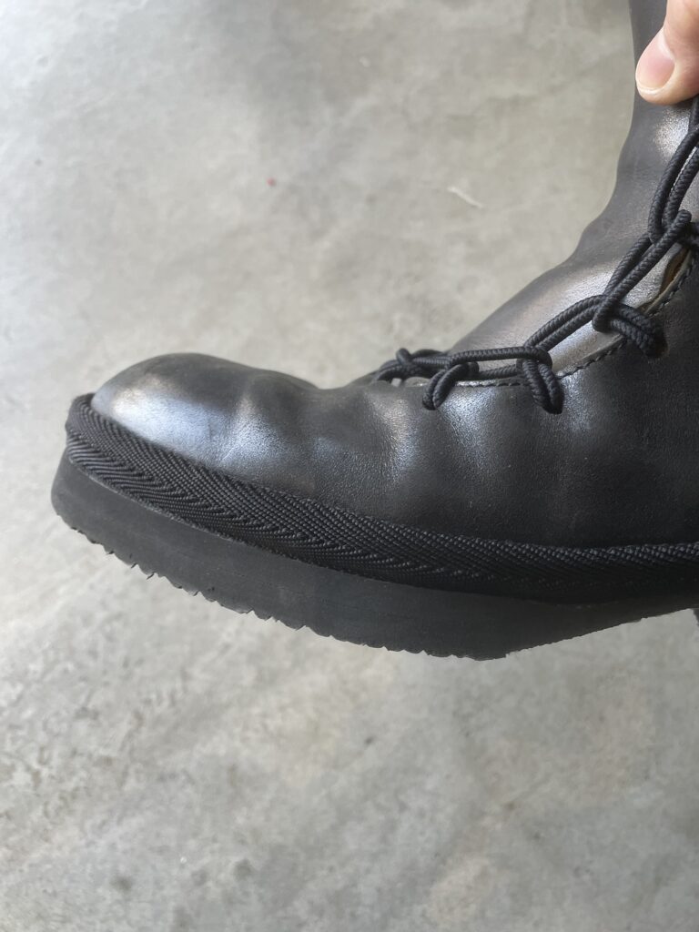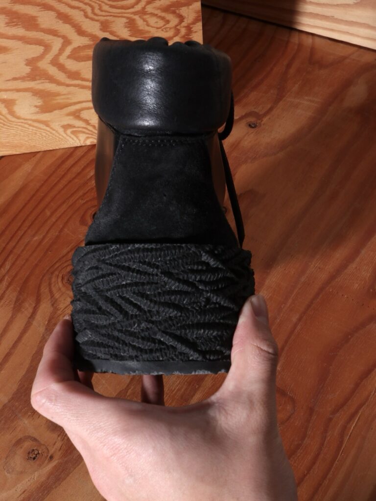 踵(カカト)、底から爪先の上までラバーソールが地繋ぎになりMIDORIKAWARYOの基本的な概念である